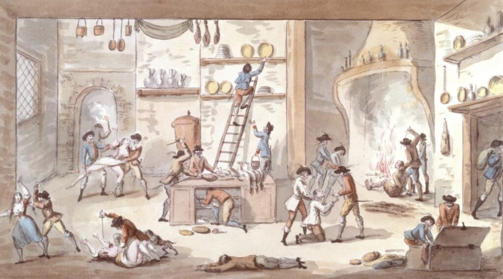 Étienne BÉRICOURT, Le saccage d’une ferme pendant la Révolution française, aquarelle sur papier.