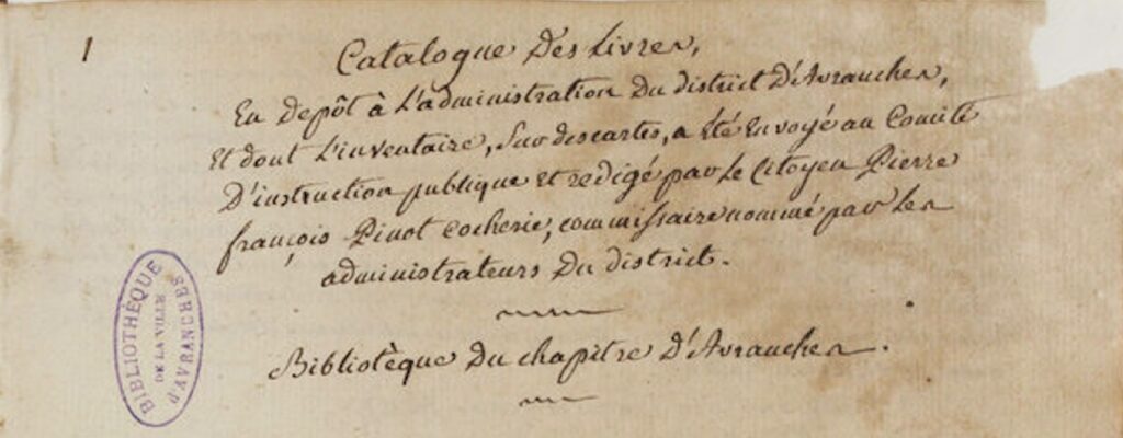Catalogue des livres en dépôt à l’administration du district d’Avranches